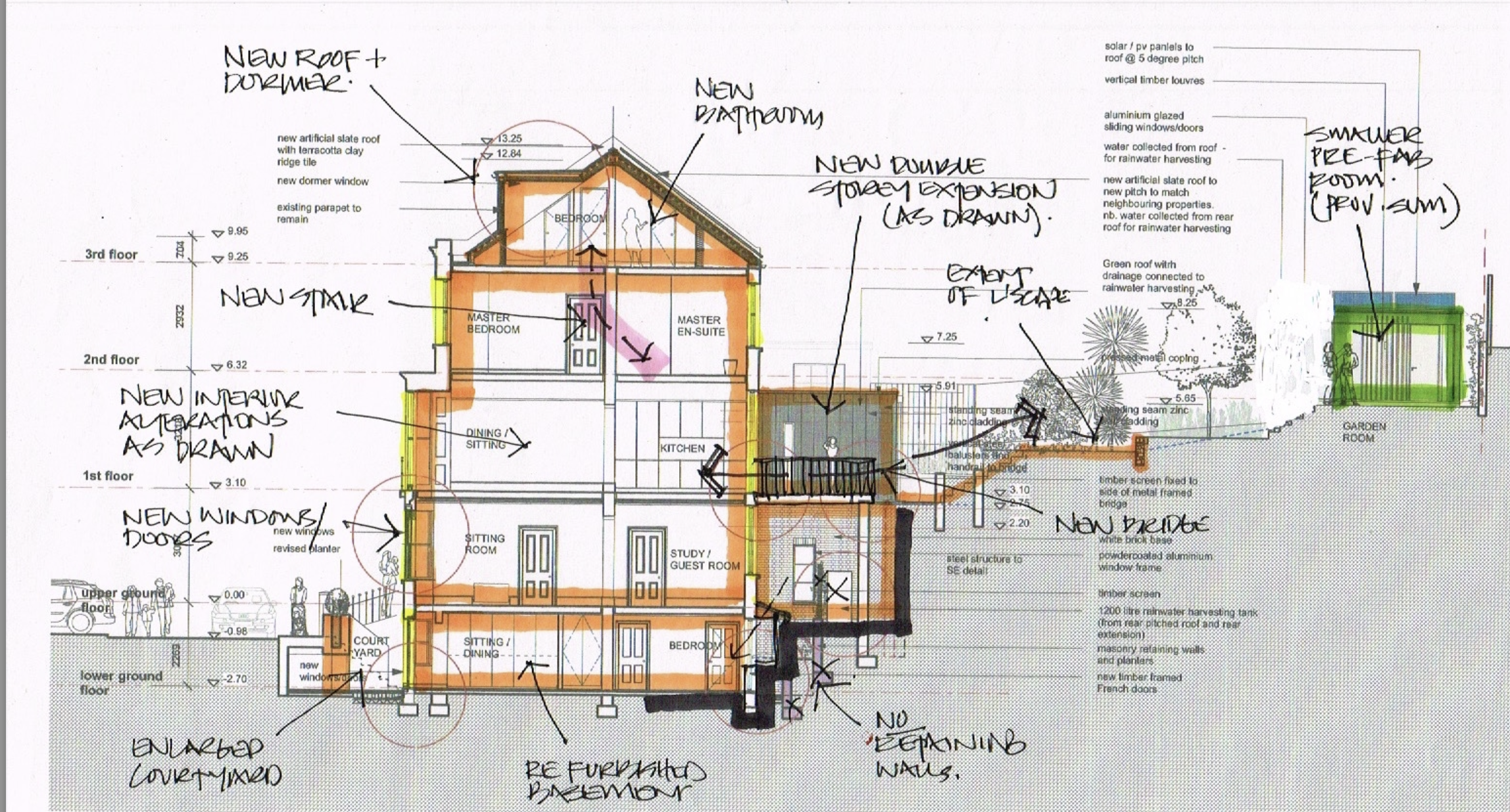 This eventually needed reworking to accommodate limited head heights and the client’s specific requirements – a great example of how interior designers refine architectural concepts to meet practical needs and client preferences.